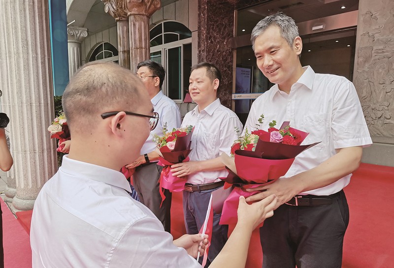 太和医院为先进工作人员献花。