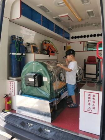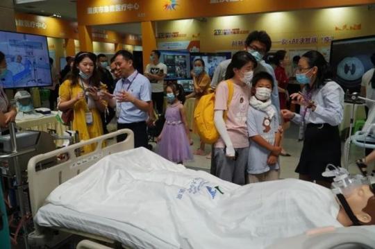重医附一院通过搭建模拟ICU病房,向市民科普体外膜肺氧合(ECMO)、呼吸机等医疗设备救治新冠肺炎重症患者的原理。萝卜村机器人体验中心模拟搭建了一家方舱医院的机器人、人工智能应用场景,展示了无接触巡检机器人、智能送药送餐机器人是如何工作的。
