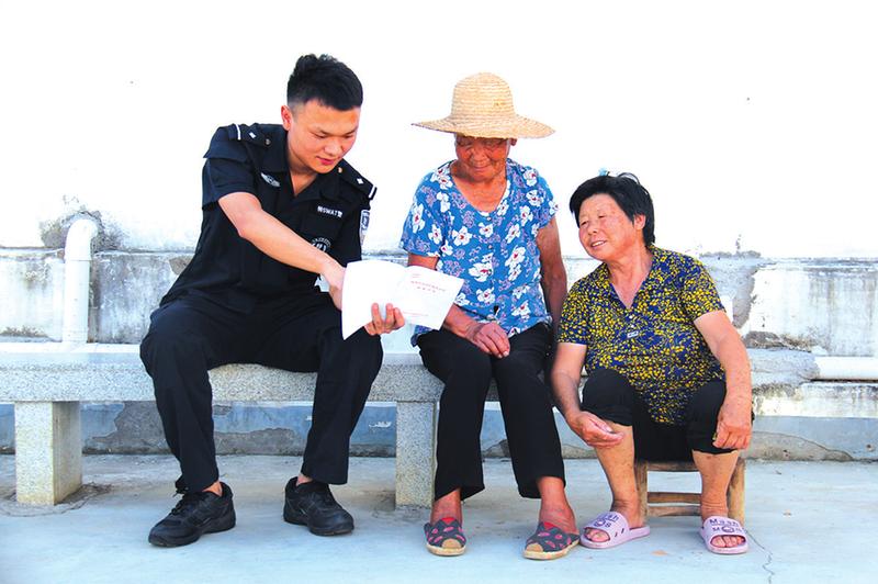▲为进一步提升群众的安全防范意识,连日来,市公安局特警支队组织民警进村入户,向群众宣传防盗、防火、防骗知识,努力遏制可防性案件的发生。图为8月17日,民警向空巢老人宣传防电信诈骗知识。(随州日报通讯员程昆刘智明摄)