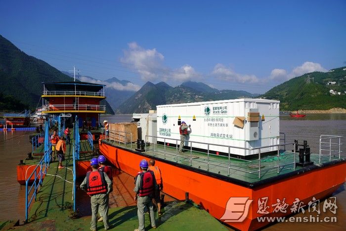8月26日,在湖北宜昌海事局巴东海事处、巴东县交通运输局、巴东县水利局、巴东长江港口发展有限公司等协助下,两条供电趸船载着岸电箱式变电站、电缆管理装置等港口岸电主设备安全运抵长江巴东岩背旅游码头。