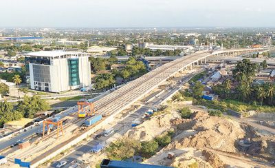 建设中的坦桑尼亚达累斯萨拉姆乌本戈立交桥项目。乌本戈立交桥是坦桑尼亚政府主导的第一个立交桥项目,由中土集团东非有限公司承建。该项目于2017年3月奠基,目前施工进度已接近80%,预计年内竣工通车。在中方资金、技术、人员的大力支持下,非洲国家基础设施建设蓬勃发展。