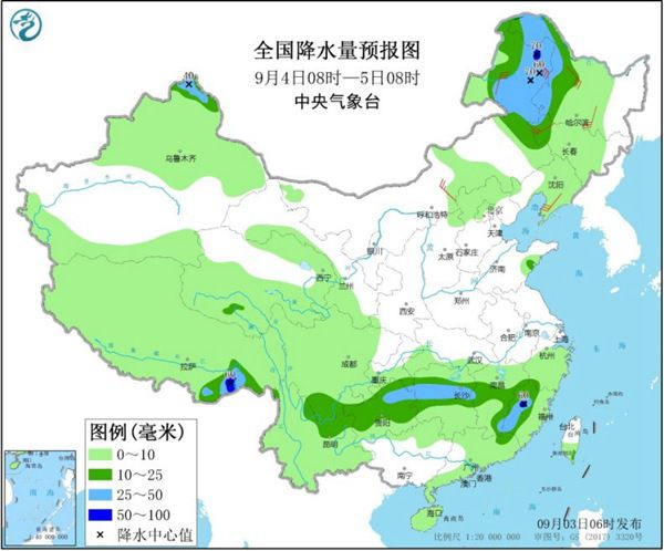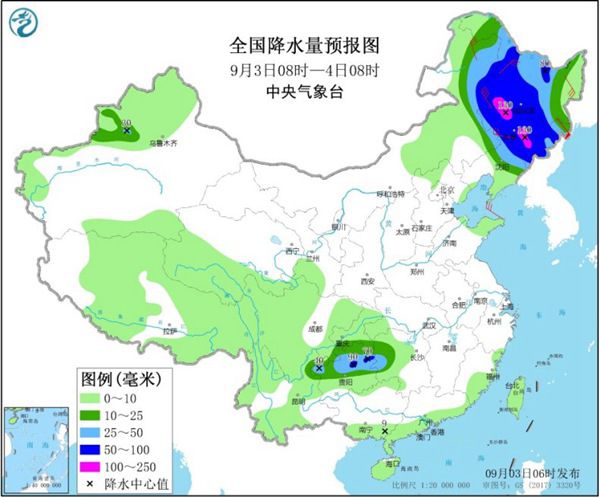 今天,随着“美莎克”北上,东北地区风雨仍将继续。中央气象台预计,辽宁中北部、吉林、黑龙江大部、内蒙古东部以及贵州中北部、湖南西部、新疆伊犁河谷等地有中到大雨,其中,辽宁东北部、吉林大部、黑龙江西部和南部、贵州中部等地有暴雨,局地有大暴雨。