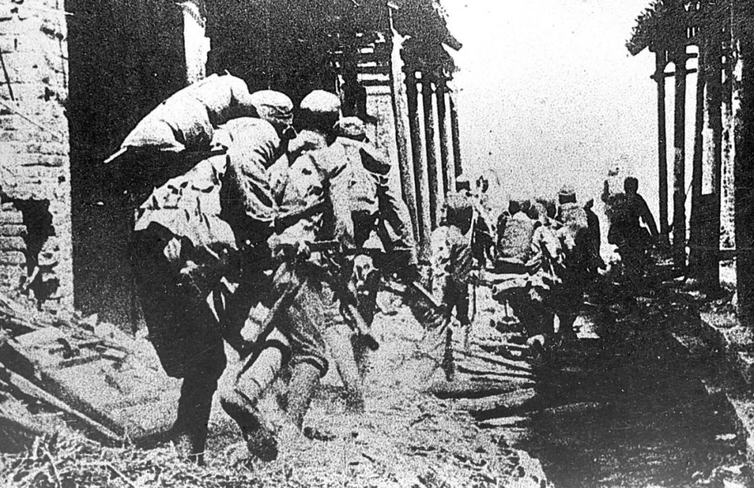 资料图片:这是1938年4月上旬,中国军队在台儿庄与日军展开激烈巷战。 新华社发