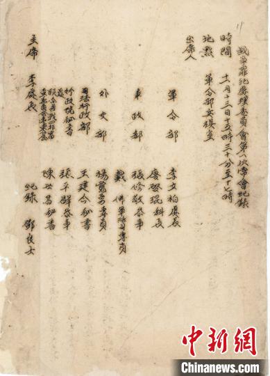 战争罪犯处理委员会第一次常会记录。民盟上海市委会供图