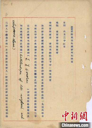 东京远东国际军事法庭庭审记录摘要。民盟上海市委会供图