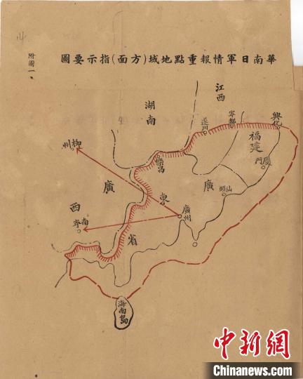 1945年第二方面军司令部所制华南日军情报点图示。民盟上海市委会供图
