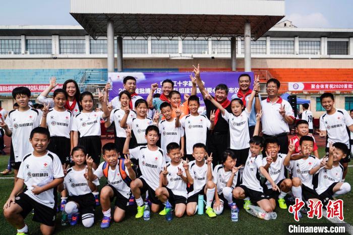 中国红十字基金会2020年首批20支博爱足球校队组建授旗暨景田爱心水上线仪式日前举行。红基会将在湖南娄底援建16支博爱足球校队,在湖南衡阳援建4支博爱足球校队。 付春来 摄