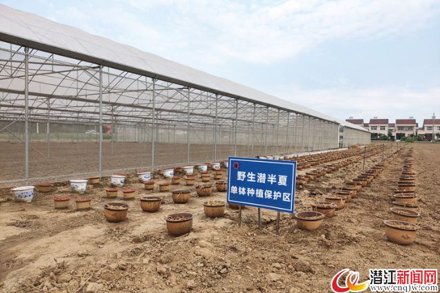潜江市处于北纬30°附近,市域内的沃土和适宜的气候为半夏生长提供了优越的自然条件。近年来,潜江市委市政府明确提出要大力发展半夏潜力产业。将半夏产业作为调整农业结构、解决旱田区农民增收致富、助力脱贫攻坚的重点产业来打造。半夏产业从“零”起步,稳步推进,已逐步发展成为我市特色主导产业、全省道地药材“一县一品”优势产业。今年上半年,潜江半夏种植面积7128亩,其中设施大棚面积965亩,露地面积6163亩,全年半夏收获面积将远超1.2万亩的规划种植面积,产值将超2亿元。目前,潜江已形成南部水田养龙虾、北部旱地种半夏的水旱双赢“南红北绿”农业产业新格局和新布局。