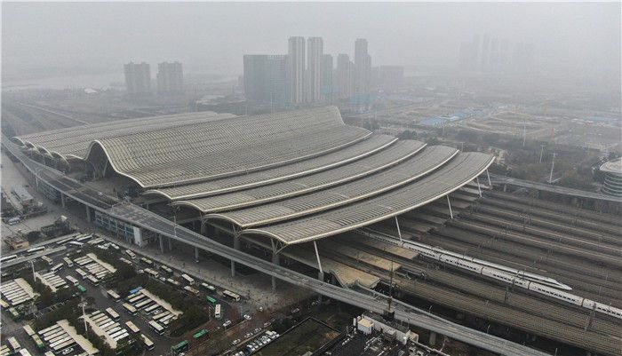 1月23日拍摄的武汉站(无人机照片)。当日,武汉疫情防控指挥部发布1号通告,自23日10时起,机场、火车站离汉通道暂时关闭。新华社记者 程敏 摄