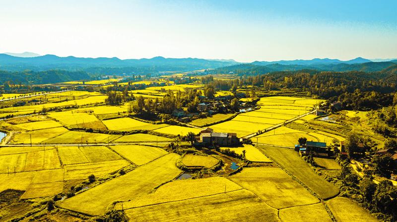 金秋时节,稻香扑鼻,随州大地一片丰收景象。图为曾都区洛阳镇邱畈村稻田。