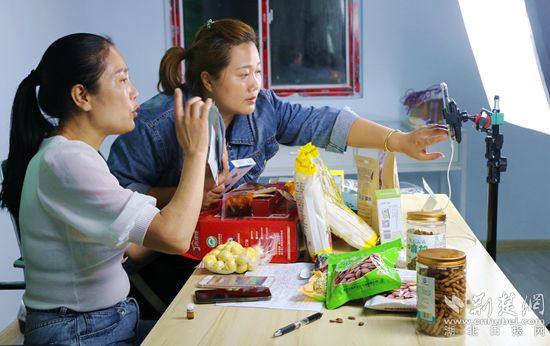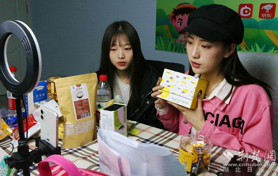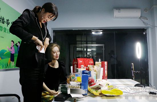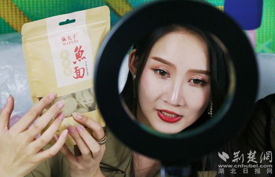 网红达人在线推销黄冈地标优品产品。记者 胡小军 摄