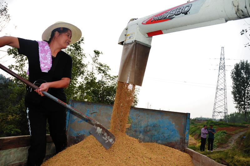 9月26日,随县澴潭镇正华种养殖业专业合作社种植的1080亩香稻,虽两次遭水淹,经排渍、洗苗、追肥、防病治虫等科学管理,仍喜获丰收。(随州日报通讯员石守京摄)