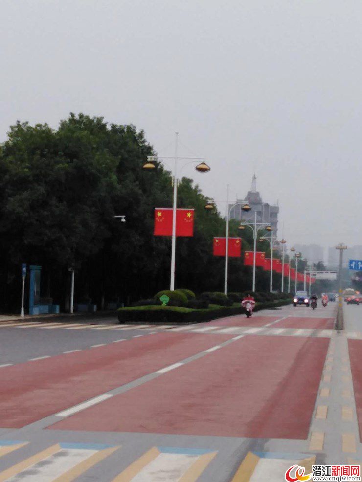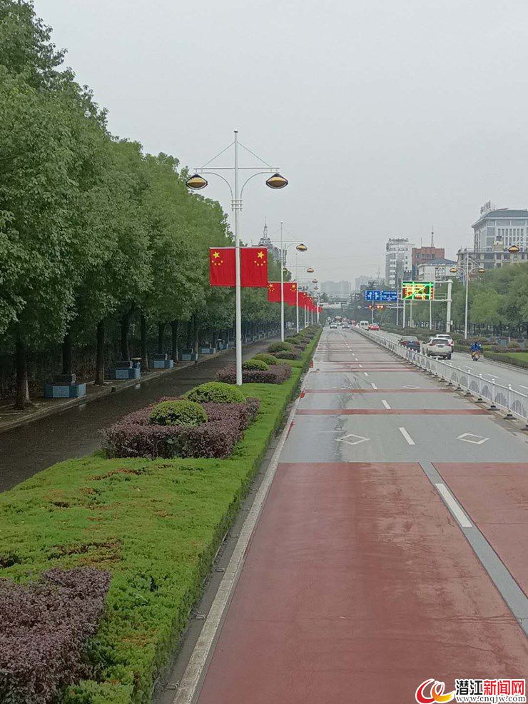 潜江新闻网讯(实习生 曾俊伟 通讯员 吴庭亮)9月29日,漫步潜江街头,笔者看到,鲜红的国旗在道路两侧迎风招展,成为一道道亮丽的风景线,不仅扮靓了街景,还营造了浓浓的节日气氛。