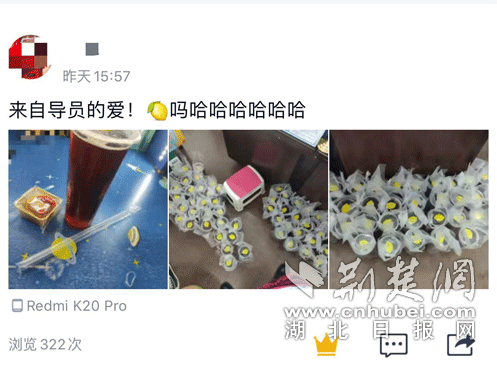 “回到寝室才知道辅导员给我们送了红茶,非常感动。”国际教育学院英语(英法方向)1901班的汪婷说道,“原本放假不能回家非常失落,温暖的红茶让我在学校感觉到了归属感,又一次被可爱的辅导员‘圈粉’啦!”