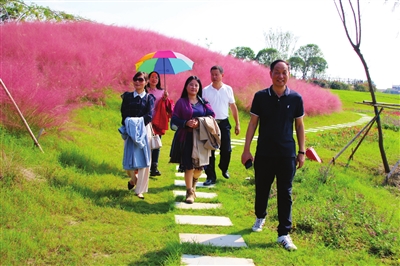 “与爱同行·惠游湖北”活动开展以来,仙桃市积极落实相关旅游惠民政策。连日来,位于长埫口镇的百万花海景区人气满满,亲子畅玩、萌宠乐园、户外拓展,吸引各地游客前来“打卡”。图为游客观赏粉黛乱子草。