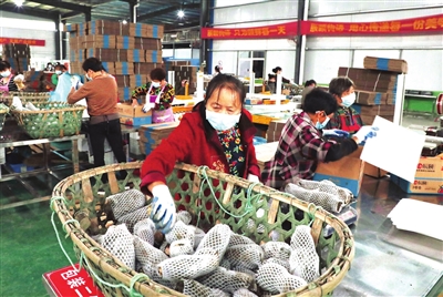 位于通海口镇共和村的康鼎农产品种养殖合作社采取“合作社+基地+农户”的运营模式,搭建农商互联农产品供应平台,吸纳贫困户就业18 户,户年均增收约1.6万元,另吸纳贫困户14户灵活就业,年收入4000元左右。图为10月14日,共和村贫困户分拣莲藕。