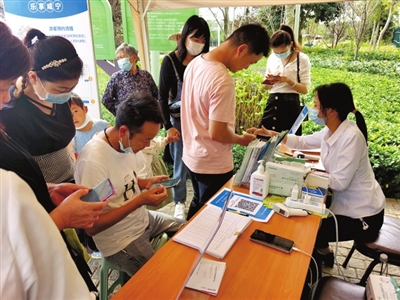 与此同时,在官桥八组田野乡村公园开心农场景区门前,笔者看到检票处排起了长队,游客们正有序地核销预约二维码、测温、登记完后陆续进入景区。景区内随处可见拍照合影、嬉戏玩耍的身影,洋溢着一派欢声笑语的热闹景象。