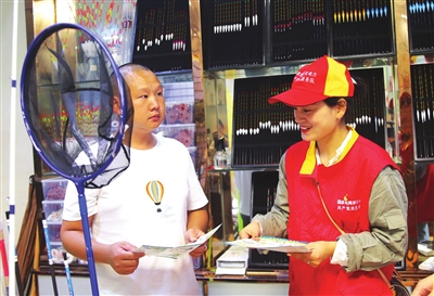 市供电公司持续开展“关爱生命 预防触电”用电安全主题宣传活动,吁请市民遵守电力法律法规,提高安全用电意识。图为10月13日,公司党员服务队走进渔具经营店,宣讲防触电安全知识。摄影 记者 张曼 通讯员 汤济林