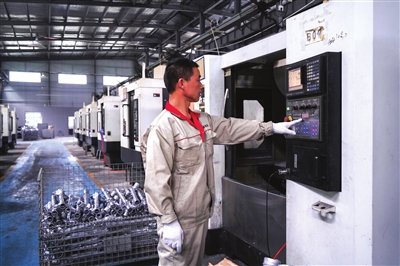 湖北正利精密金属科技有限公司迎来发展黄金期,生产的汽车转向器、车联网通讯终端带支架总成、发动机链条盖等产品供不应求。图为10月20日,湖北正利精加工车间,一名工人正在操控自动加工机器。摄影 记者 邓娟