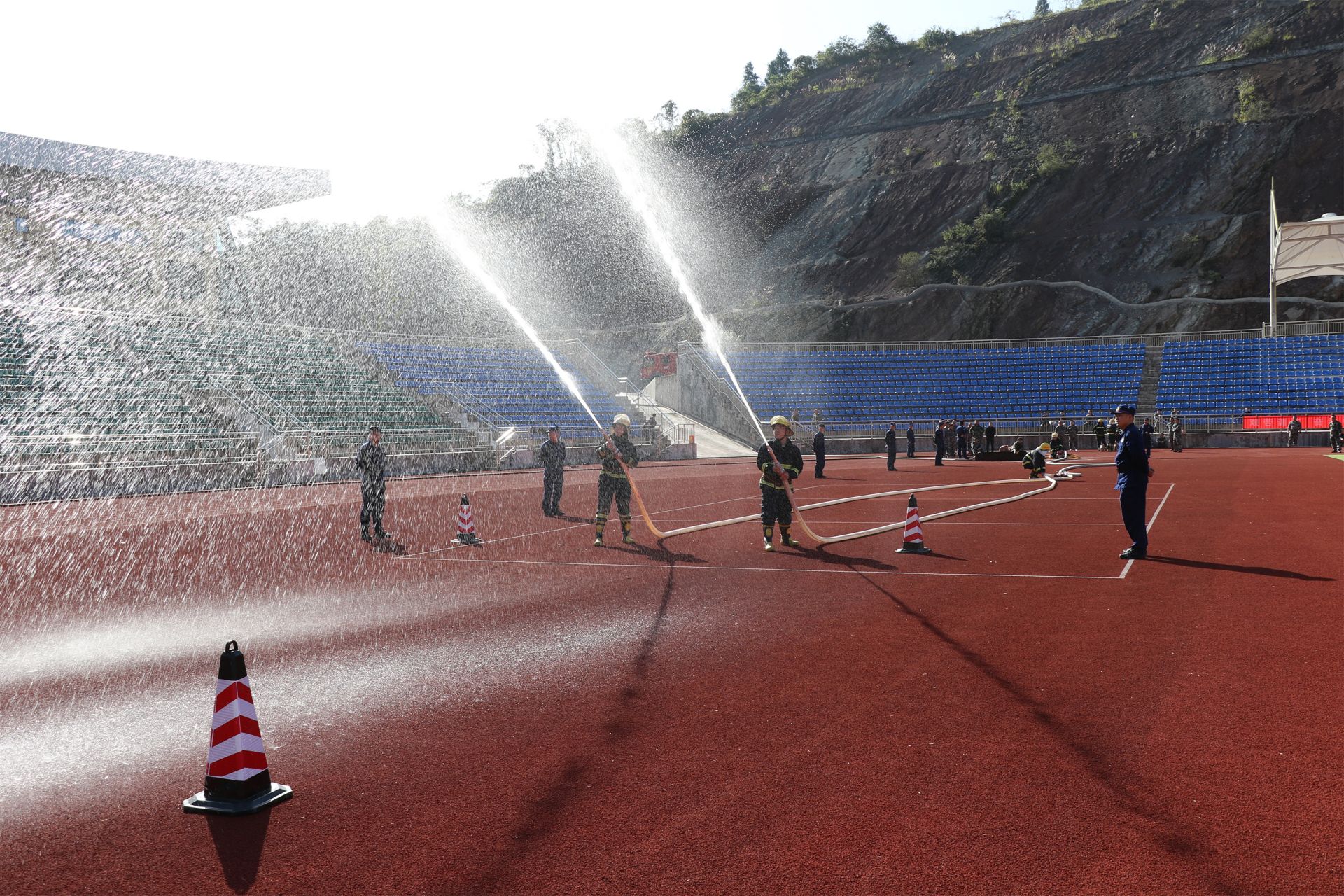 此次比武竞赛以“贴近实战”为原则,专职队“比武”项目包括一人两盘水带连接操、手台机动泵吸水出水操、水罐消防车单干线出两支水枪操;微型消防站“比武”有手提式干粉灭火器操和连接消火栓出水操2个项目。
