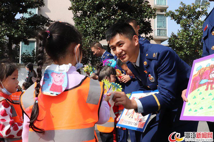 “叔叔,这是我们自己做的花朵,里面还有棒棒糖呢,送给你。”活动最后,小朋友们为消防员叔叔表演了精心排练的手语操《听我说谢谢你》,表达自己心中的敬意,真诚感谢忠于职守、守护人民平安幸福的奉献者们,并将自己亲手制作的手工花和绘画作品送给了消防员叔叔。