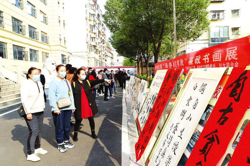 10月29日,曾都区西城街道纪工委联合新时代文明实践所、妇女联合会举办“涵养廉政家风”廉政书画展。据悉,该书画展从8月开始筹备,共收集书画作品十余幅,包含“家规家训”“家风楹联”等各类书画作品。 (随州日报特约记者张立、通讯员吕贞、张玉摄)