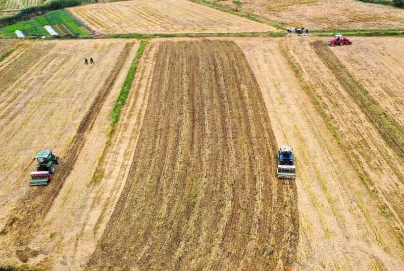 11月3日,曾都区何店镇三岔湖村农民正在播种小麦。 (随州日报全媒记者 徐斌摄)