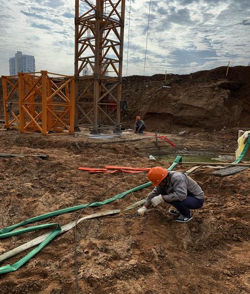 日前,湖北特检院随州分院对曾随文旅特色古镇——卓尔青铜古镇塔式起重机进行检验,确保施工作业安全。图为检验人员进行塔式起重机接地电阻检测。 (随州日报通讯员刘恒摄)