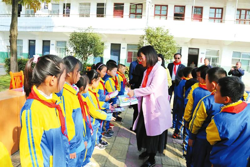 为丰富学生文化知识,11月6日,曾都区府河镇五四中心小学邀请团区委开展“争做新时代好队员”读书分享会暨“情暖童心”爱心捐赠活动,团区委为该校捐赠图书、书包、文具,价值达3万余元。(随州日报通讯员 张莹莹摄)