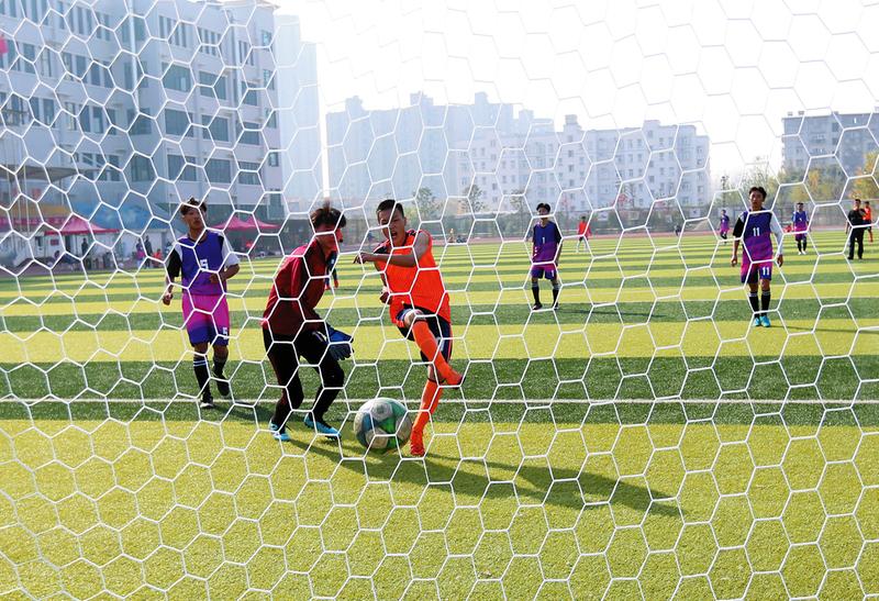 11月15日,随州市2020年中学生足球赛落下帷幕,图为高中组比赛瞬间。(随州日报全媒记者徐斌摄)