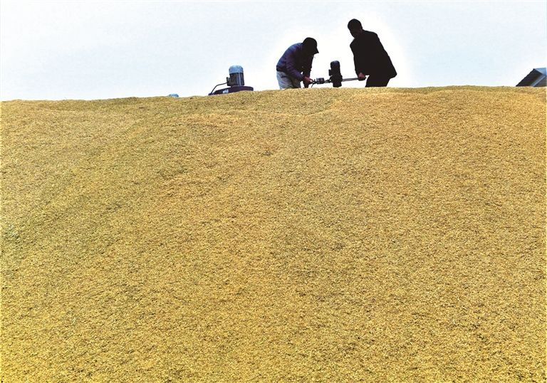 11月18日,潜江市积玉口镇荷花村脉旺嘴惠民收购站组织人员在利用烘干机烘烤收购的稻谷。近年来,该村针对村民卖粮难问题,引导扶持村里能人杨青林办起了惠民收购站。在稻谷收获期,该站组织人员车辆到田间地头收购稻谷,为村民提供周到、便捷的服务。