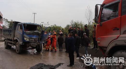 荆州新闻网消息:11月21日上午8点,松滋市刘家场镇发生一起交通事故,两辆货车迎面相撞,造成一名司机受伤被困,松滋市消防、交警、医疗等部门接到报警后,先后赶赴现场展开协同救援,最终成功救出被困人员。