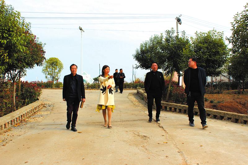 近日,广水市应山、陈巷、长岭等5个镇办财政所负责人到随县新街财政所,实地考察美丽乡村项目建设,并就项目申报、资金监管及业务工作进行了交流。图为新街财政所主任张莉(左二)现场介绍黄家寨美丽乡村建设情况。(随州日报通讯员杨涛摄)