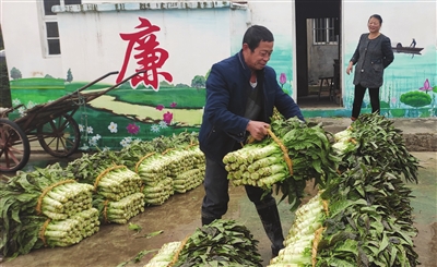 沔城镇古柏门村的莴苣上市了,每公斤批发价为1.6元。图为11月26日下午,该村村民张登早把已被订购的莴苣从地里收运回家。
