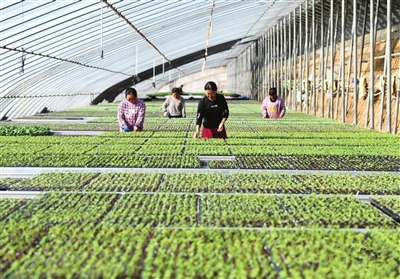 11月28日,乐亭县环城现代农业园区一家育苗基地的工人在观察蔬菜秧苗的长势。据介绍,目前乐亭县设施蔬菜、瓜果种植面积达29万多亩,该县通过推广集约化育苗技术、建设标准化育苗基地、开展"订单供苗"等措施,年可向全县及周边地区供应优质蔬菜、瓜果种苗逾2亿株。