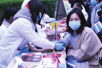 12月1日是第33个世界艾滋病日,市卫健委、市总工会、市妇联、市禁毒办、干河街道办事处、仙桃职业学院共同举办“携手防疫抗艾,承担健康责任”主题宣传活动,举办了预防艾滋病健康教育公益讲座、健康检测、法律援助咨询和预防艾滋病知识有奖问答。图为医务人员为居民进行体检。