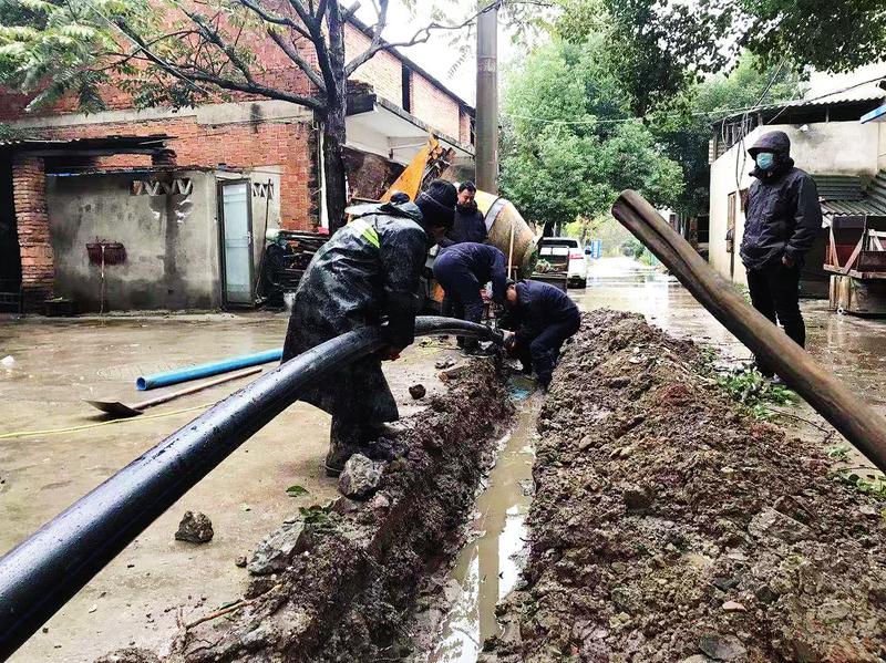11月25日,广水市第一自来水公司冒雨施工,抢通应办双桥社区供水管道。(随州日报通讯员 黄萍 郝贤政摄)