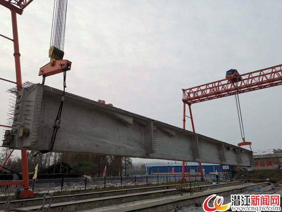 潜江新闻网讯(记者 曹以成 通讯员 张承志)12月4日下午17时38分,在潜江汉江大桥建设施工现场,伴随着声声短促的指挥哨声,一片长42米,宽1.75米、重约164吨的T梁从半空中缓缓降下,随后稳稳固定在台座上。至此,潜江汉江大桥南侧引桥全面贯通,为大桥实现建成通车目标奠定了坚实基础。