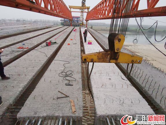 潜江汉江大桥是我省规划的新S247的重要组成部分,起于天门市张港镇狮子桥村,止于潜江市竹根滩镇王拐村,全长2.46Km,主桥为(106+200+106)m矮塔斜拉桥,两侧引桥分别跨潜江堤和天门堤。当前,连接主桥与潜江侧地面的引桥已全面贯通,下一步将实施桥面附属工程施工。