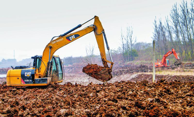 随县厉山镇利用冬闲季节强力推进农田整理、水利基础设施工程建设。图为该镇三星村2组农田水利整理项目施工中。(随州日报全媒记者李文军、通讯员蔡琳、向华摄)