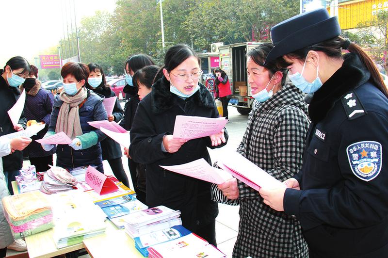 12月4日,是第七个国家宪法日。随州市公安局联合市妇联在随州购物中心门前,开展“尊崇宪法·共创和谐”宣传活动,向群众发放相关宣传资料2000余份,倡导反家庭暴力,维护妇女儿童合法权益。 (随州日报通讯员王莹婷刘智明摄)