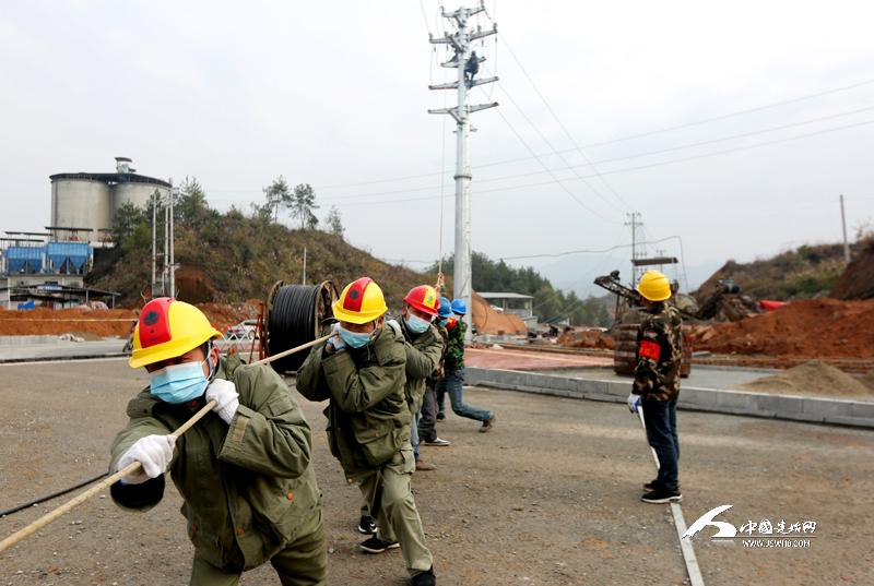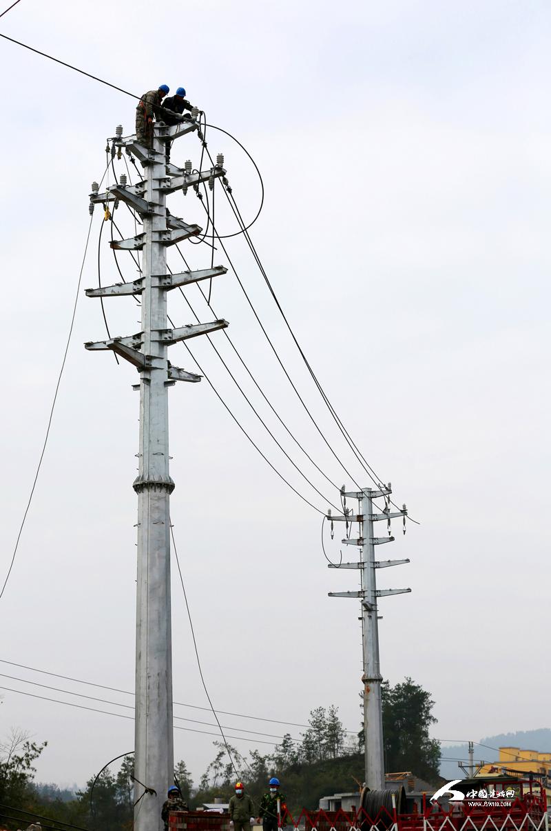 12月9日,在建始县黄土坎易地扶贫产业园配套电源建设工地,国网建始县供电公司施工人员正加紧进行金具安装、导线展放作业。