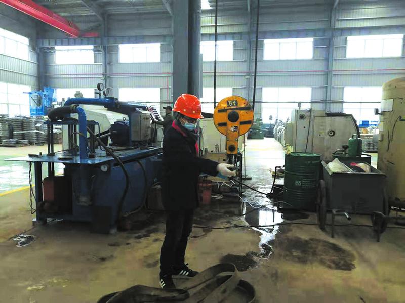 近日,湖北特检院随州分院工作人员来到湖北华特专用设备有限公司,对该公司吊钩和防脱钩装置进行检验。(随州日报通讯员张龙摄)