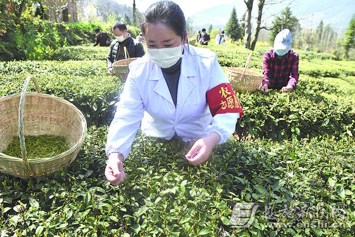 农业志愿服务专家组织茶农抢时采摘茶叶。(全媒体记者 刘波 摄)