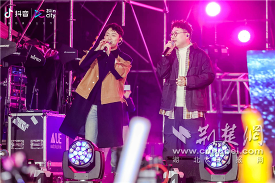 在抖in美好武汉城市生活节嘉年华现场,一众实力唱将、达人乐团,现场演绎多首爆款歌曲,打造了一场视听盛宴。知名歌手王北车率先登场,以一首《致你所爱》拉开抖in美好武汉奇妙之夜的序幕,抖音大热歌曲的《陷阱》耳熟能详,引发全场大合唱;武汉方言民谣发起人冯翔,自弹自唱释放出武汉文化魅力,引发在场情感共鸣;唱作人组合好妹妹,演唱《藏不住的微笑》和《不说再见》等歌曲,唤醒在场观众往日旧时光的记忆......观众热情满满,嗨到停不下来。