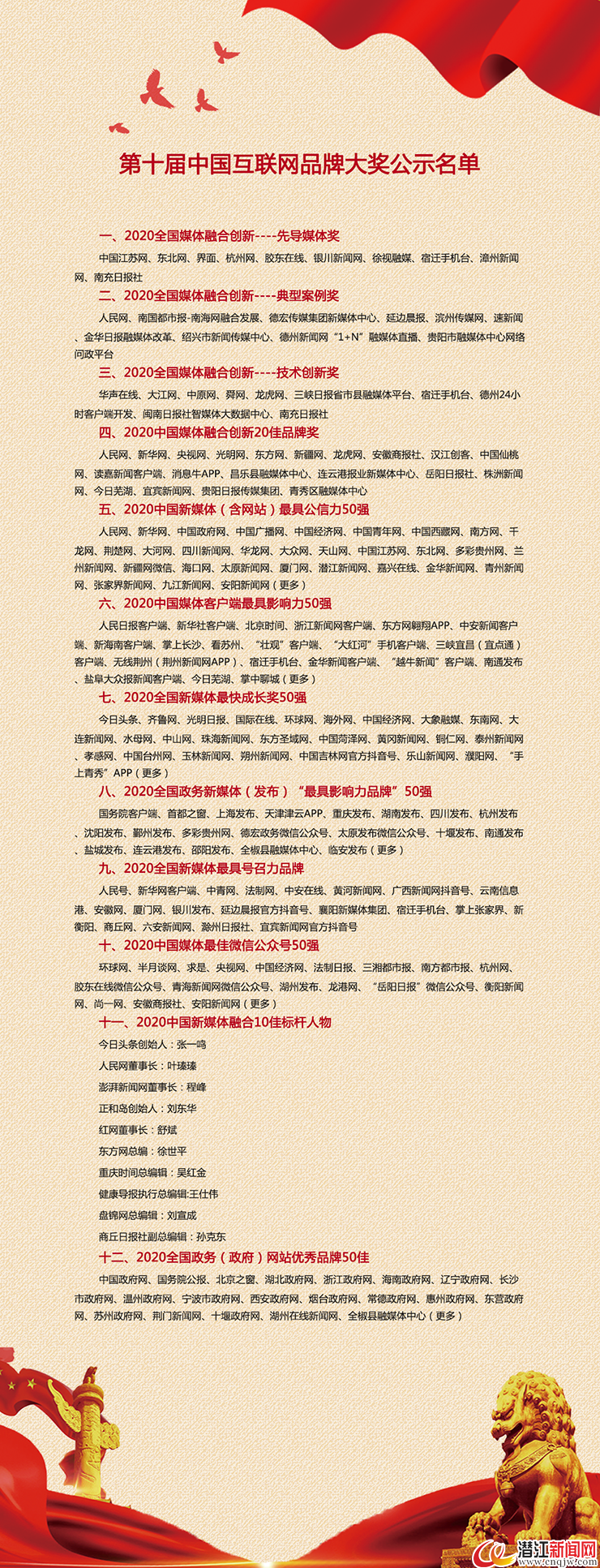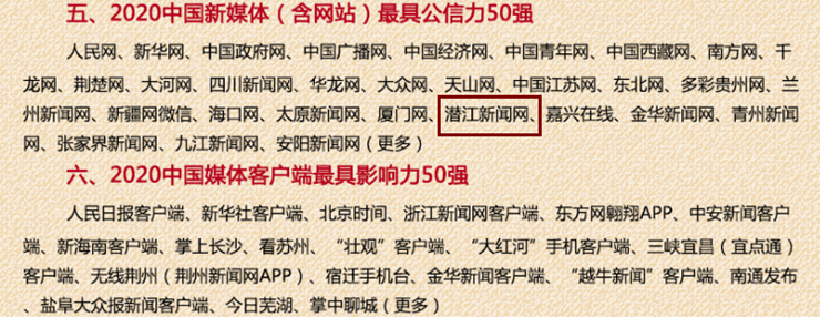 潜江新闻网讯(记者 曹以成)12月16日,记者获悉,第十届中国互联网品牌大奖名单已于日前揭晓。此次评选中,潜江新闻网与人民网、新华网等一同跻身2019-2020中国新媒体最具公信力50强。