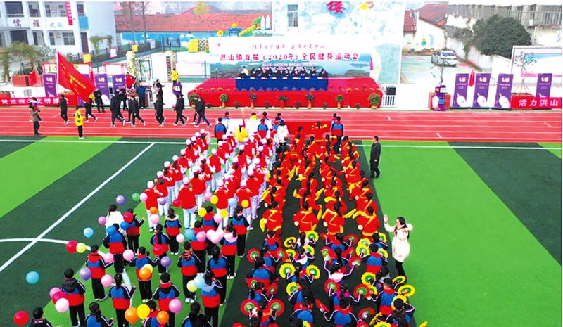 日前,随县洪山镇首届全民健身运动会在洪山镇小学举行,来自全镇各村、各单位、各企业900余人参加了开幕式。 (随州日报通讯员唐广益 王令摄)