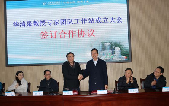 十堰市人民医院党委书记、院长钟森与武汉大学人民医院耳鼻咽喉-头颈外科主任华清泉教授签订协议,并共同为工作站揭牌。武汉大学人民医院华清泉教授、廖华教授、许昱教授、屈季宁教授、孔勇刚教授、江洋教授受聘为十堰市人民医院特聘专家。