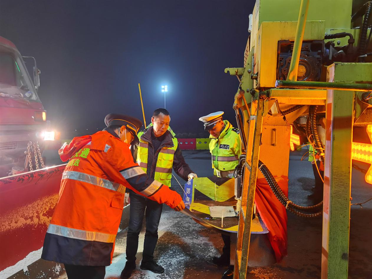 除了协助做好撒布预警工作,路政、交警部门还担负着恶劣天气下夜间联合巡查任务。29日夜间,根据联勤联动机制领导小组安排,路政、交警还成立了巡查小组,在全线开展夜间联合巡查工作。