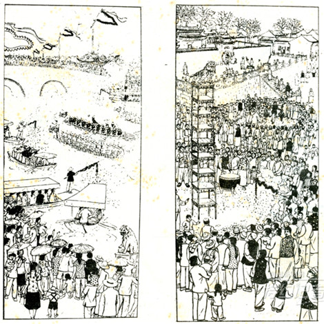 小城八景图:1、便河竞渡。 2、江渎宫攀高